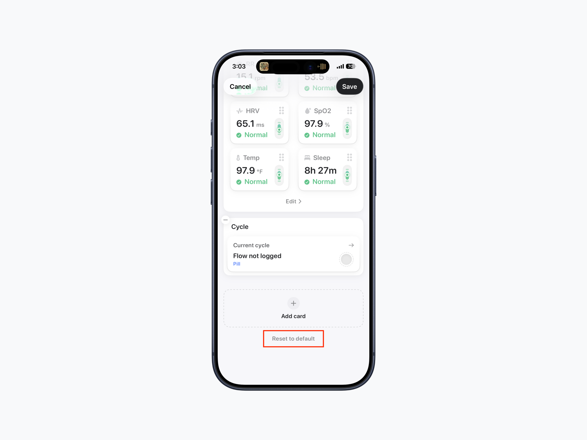 For Cycle: tap the gear icon in the top-right corner.Change Visibility to disable the section, removing all associated features and UI.
