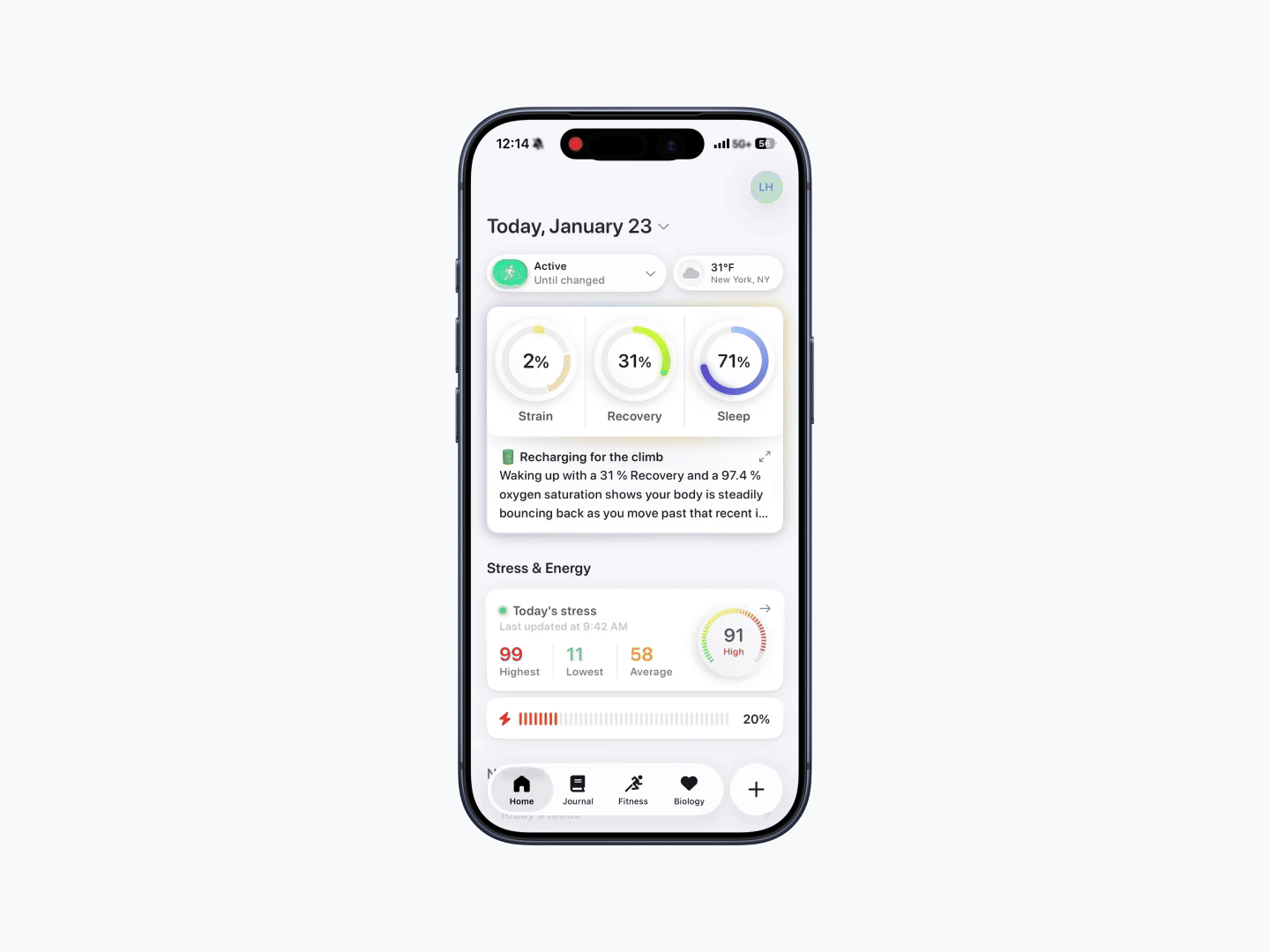You can continue using Bevel’s other features, including Strength Builder, Biology, Journal, and manual logging, though insights may be limited. Manual entries or Apple Watch’s “All Day” setting can help, though scores may change throughout the day as Apple Health updates data (for example, resting heart rate).