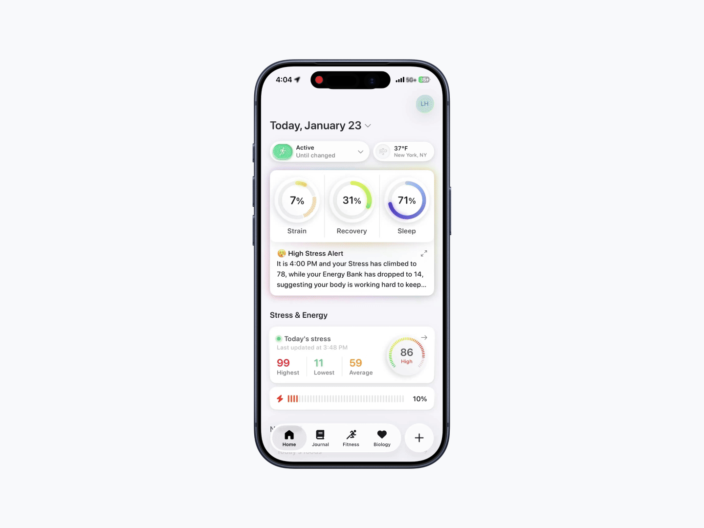 Tap the + button below and to the right of today’s date.