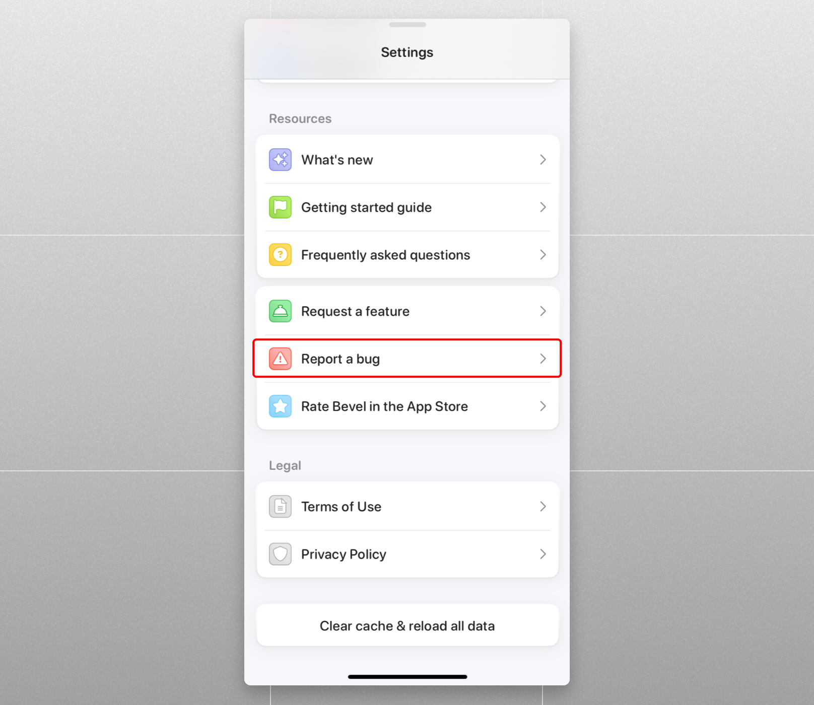 To report a bug, go to Profile > Report a bug. If applicable, you can take screenshots to attach to the bug report.
